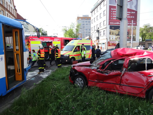Dvě jednotky profesionálních hasičů (HZS MSK) zasahovaly dnes, ve čtvrtek, 18.5.2017 ráno v centru Ostravy u srážky tramvaje s osobním automobilem Škoda Fabia, který řídil senior. Muž se zranil, nehoda zkomplikovala ranní již tak hustou dopravu v okolí křižovatky Mariánskohorské s Nádražní ulicí.             Jde během necelých tří dnů již o druhou nehodu tramvaje s osobním vozidlem v rušné části Ostravy, u které zasahovali profesionální hasiči z Hasičského záchranného sboru Moravskoslezského kraje. V obou případech šlo o fabii, kterou vždy řídil senior.             Čtvrteční nehoda byla ohlášena na operační středisko hasičů krátce po půl osmé ranní. Do centra Ostravy vyrazily dvě jednotky HZS MSK – ze stanic Přívoz a Fifejdy. Odhadem lehce zraněný řidič již byl ošetřován uvnitř tramvaje.             Hasiči vyprostili havarovanou fabii z kolejí pomocí ručního motorového navijáku a odtáhli ji na travnatý středový pruh, kde již nebránila dopravě. Na menší únik provozních kapalin na kolejích použili nasákavý sorbent, který později uklidili.             Nádražní ulice byla po dobu hasičského zásahu částečně neprůjezdná, křižovatka s nehodou byla špatně průjezdná, kolony vozidel se tvořily ze všech směrů.             První ze dvou zmíněných nehod ostravské tramvaje s osobním automobilem Škoda Fabia, který řídil senior, se stala v úterý 16.5.2017 odpoledne v Ostravě-Zábřehu na křižovatce Výškovické ulice a ulice Kosmonautů. Zasahovala zde jednotka HZS MSK ze stanice Zábřeh. Řidič vyvázl s lehkým zraněním a šokem.             I když profesionální hasiči dosud nevědí, kdo obě zmíněné nehody zavinil,  nabádají řidiče vyššího a seniorského věku, aby zvláště za horka a intenzivního slunečního svitu nepřeceňovali své silniční dovednosti a síly v hustém městském provozu a dali raději přednost jiné formě dopravy, nebo požádali o řízení jejich oblíbeného vozidla věkem mladší příbuzné či známé... Petr Kůdela, tiskový mluvčí – HZS Moravskoslezský kraj Foto: HZS Moravskoslezský kraj