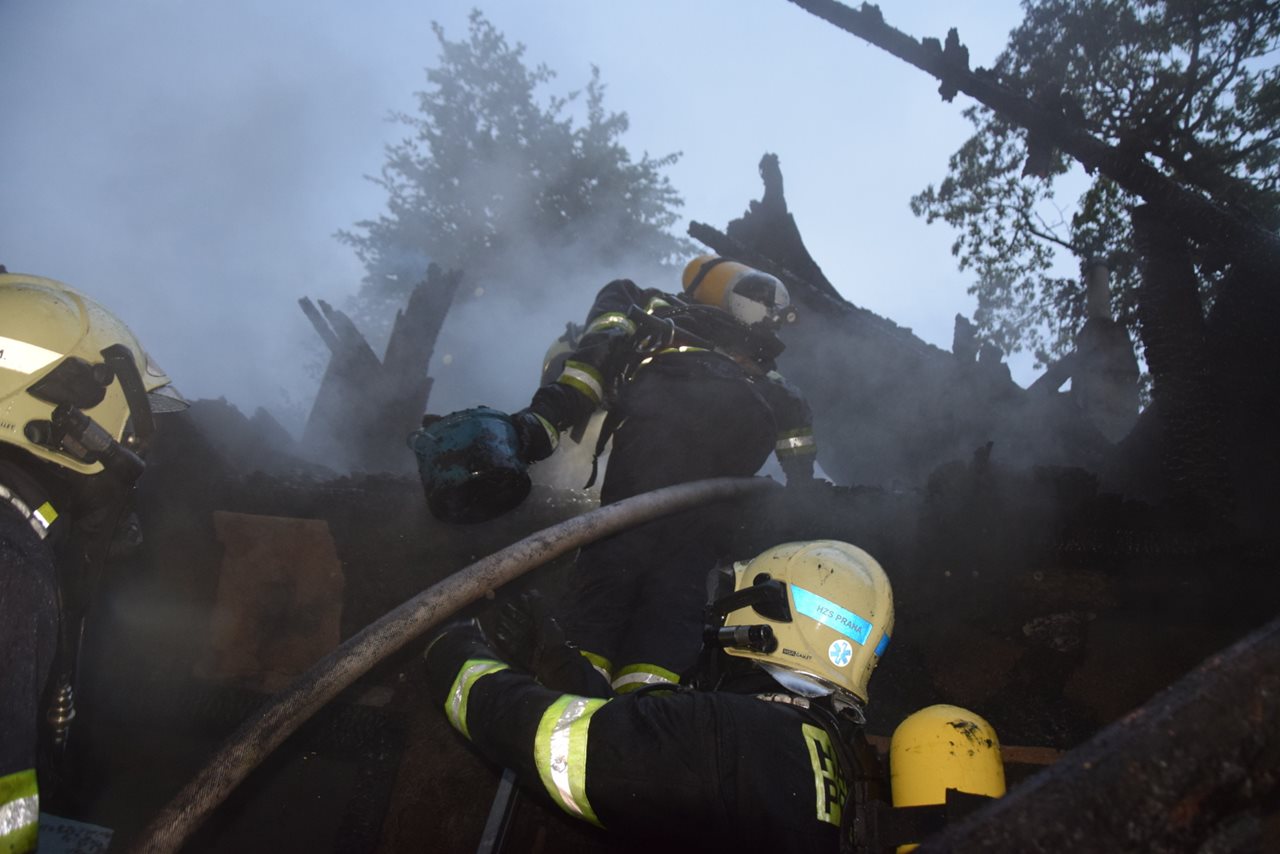 Požár v rekreační oblasti jižně od Prahy na pravém břehu Vltavy byl na tísňovou linku HZS Středočeského kraje oznámen v neděli 14. května pět minut po 19. hodině. Kromě profesionálních hasičů z Jílového a Říčan a dobrovolných jednotek obcí Dolní Břežany a Zvole k události vyjeli v rámci mezikrajské výpomoci také hasiči z radotínské stanice HZS hlavního města Prahy. Celkem se k požáru sjelo osm cisternových vozů a jedna automobilová plošina. Chata se však nacházela ve svahu, kam se nedalo těžkou technikou zajet. Hasiči proto natáhli skoro sto metrů hadicového dopravního vedení – ovšem přes koleje železniční trati, kde byl na určitou dobu zastaven provoz. Později se podařilo nedaleko nalézt místo, kde se dalo hadicové vedení protáhnout pod kolejemi, a provoz na železnici tak mohl být s určitým omezením v daném úseku obnoven. Rekreační objekt byl požárem zasažen v plném rozsahu a na zvládnutí plamenů byly nasazeny tři C proudy. Zásah probíhal v dýchací technice z nastavovacích žebříků. Hodinu po ohlášení události hasiči požár lokalizovali a velitel zásahu začal s redukcí jednotek. Poté se hasiči zaměřili na rozebírání konstrukce, vyhledávání skrytých ohnisek a jejich dohašování. Z chaty zároveň vynesli malou propanbutanovou lahev a asi 30 litrů různých ředidel. Likvidace byla na operační středisko nahlášena krátce před půl jedenáctou. Přímé škody vyčíslil vyšetřovatel na 100 tisíc korun, stejnou částkou ohodnotil i uchráněnou vedle stojící chatu. Příčinou vzniku požáru byla nedbalost dospělých osob při manipulaci s otevřeným ohněm. Při požáru ani v průběhu zásahu nebyl nikdo zraněn, na místě byla i zdravotnická záchranná služba, která po zmonitorování situace odjela. por. Ing. Ladislav Holomčík tiskový mluvčí HZS Středočeského kraje Foto HZS Středočeského kraje