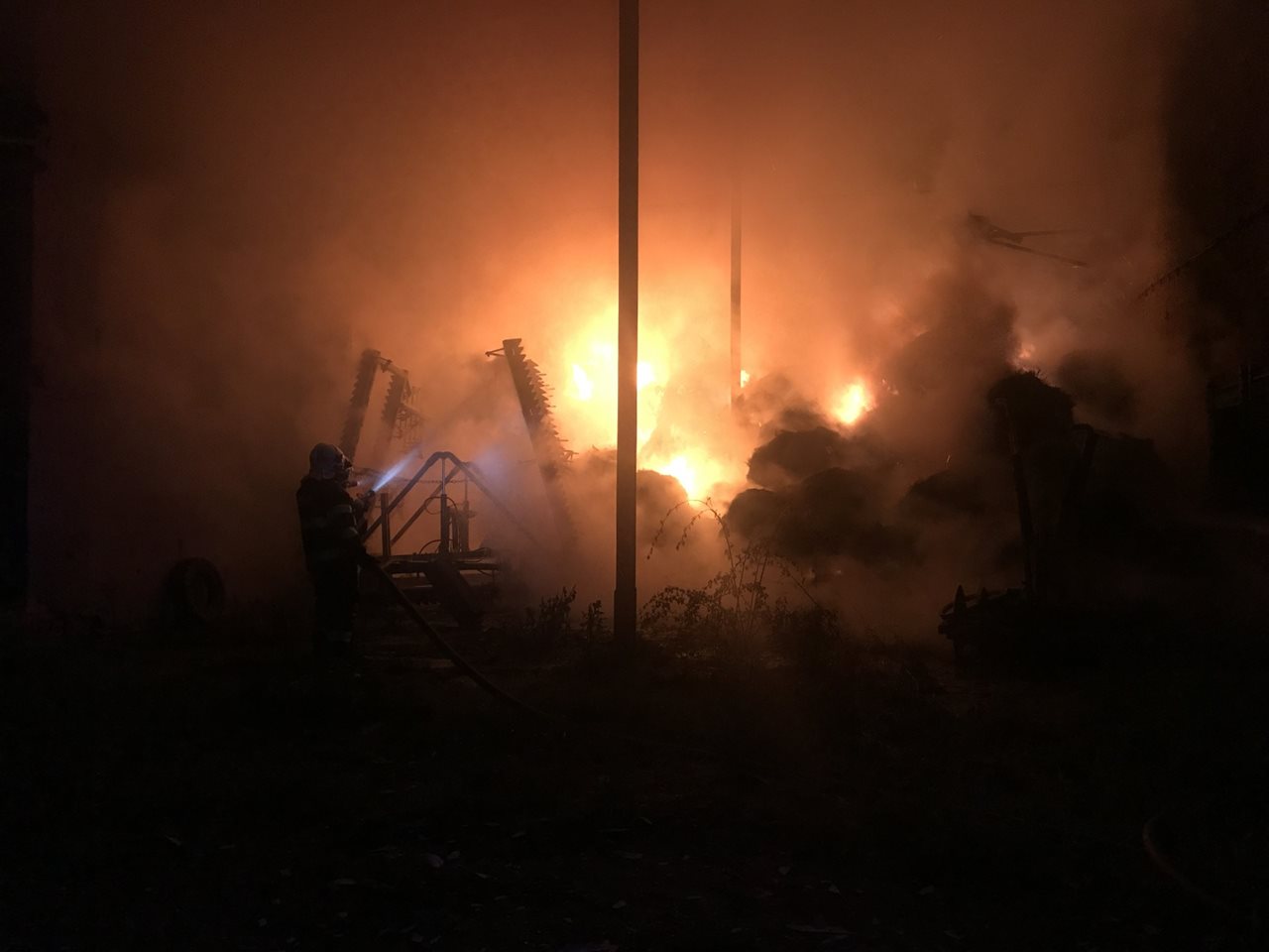 Čtyři minuty před půlnocí byl v sobotu 6. května ohlášen na linku tísňového volání HZS Středočeského kraje požár sýpky v areálu bývalého zemědělského družstva v Cerhenicích na Kolínsku.  Vzhledem k množícím se telefonátům od oznamovatelů o rozsahu požáru a dalšímu upřesnění, že v jeho blízkosti se nachází čerpací stanice pohonných hmot, vyhlásil operační důstojník ihned druhý stupeň požárního poplachu. K místu události tak zamířily jednotky profesionálních hasičů ze stanic Kolín a Poděbrady, dobrovolné sbory obcí Cerhenice, Pečky, Plaňany, Ratenice, Poříčany a Sadská a také jednotka podniku Paramo a.s. Kolín. V době příjezdu první jednotky byla požárem zasažena třetina budovy o půdorysu zhruba 20 x 30 metrů, ve které bylo uskladněno balíkové seno. Požár se stále rozšiřoval do další části objektu, kde byly uskladněny zemědělské stroje a různé vybavení. Hasičům v dýchací technice se včasným zásahem pomocí čtyř C proudů a vysokotlaku podařilo zabránit rozšíření požáru jak do zbytku budovy, tak i na nedaleko stojící kamion a čerpací stanici. Pro zajištění dostatku hasební vody bylo v obci zřízeno čerpací stanoviště, odkud byla voda dopravována kyvadlově. Po příjezdu majitele byl domluven traktorobagr, s jehož pomocí začalo vyvážení zasaženého sena na volné prostranství, kde bylo následně rozhrabáno a dohašeno. Krátce po páté hodině ranní byla velitelem zásahu ohlášena lokalizace požáru, kdy následně došlo i k redukci zasahujících jednotek a snížení poplachového stupně. Na místě byla do dopoledních hodin ponechána místní dobrovolná jednotka na dohlídku. Na kontrolu požářiště byl povolán i policejní kynolog se psem vycvičeným na vyhledávání akcelerantů hoření, ale výsledek průzkumu byl negativní. I přesto je jednou z vyšetřovacích verzí příčin vzniku požáru úmyslné zapálení. Přímé škody byly vyčísleny na 400 tisíc korun, uchráněné hodnoty částkou 500 tisíc korun. Náročný zásah, do kterého se zapojilo přes padesát hasičů, se obešel bez zranění. nprap. Petr Svoboda oddělení IZS HZS Středočeského kraje Tiskový odbor - HZS Středočeského kraje Foto HZS Středočeského kraje