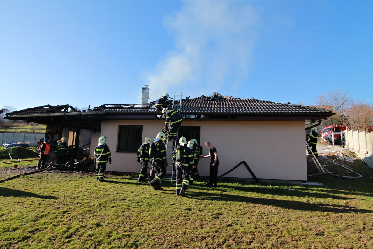 Požár rodinného domu v Mirošovicích, zasahovalo šest hasičských jednotek