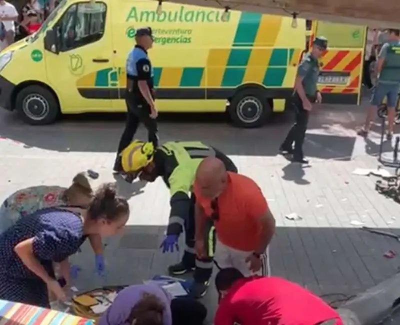 Pronajaté vozidlo, které řídil anglický turista, který měl podle policie negativní test na drogy a alkohol, jelo po hlavní Avenida Nuestra Señora del Carmen v Corralejo, když náhle opustilo silnici a přejelo několik lidí, kteří byli na terase kavárny, a zranilo osm lidí, z toho pět vážně.