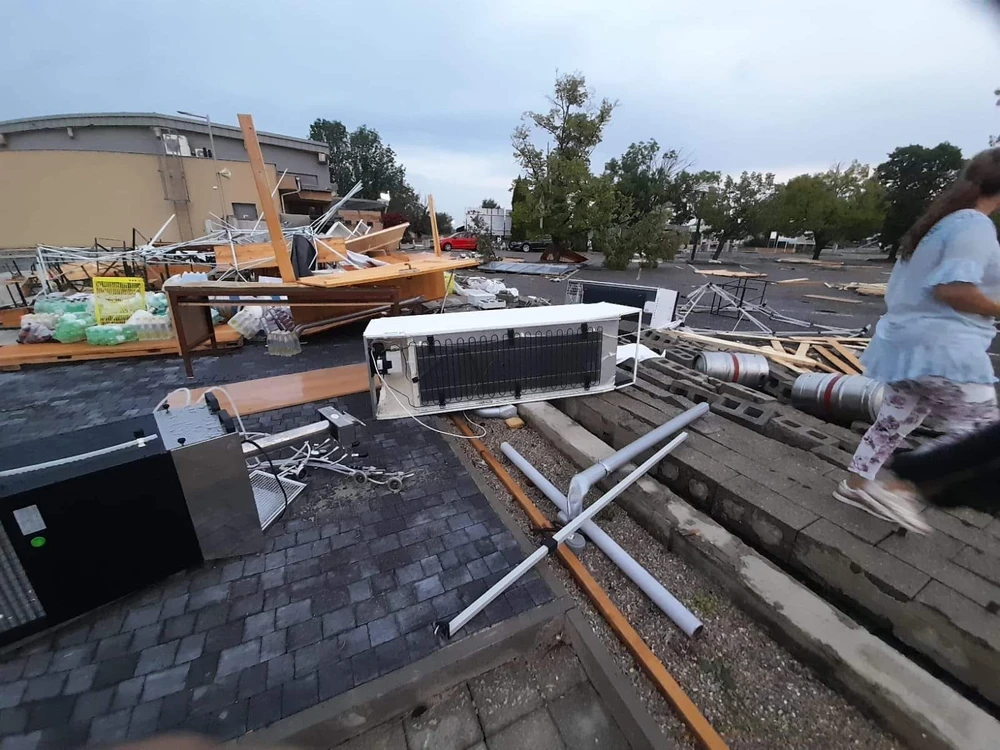 Bouře měla za následek popadané stromy v areálu koupaliště a zničila stánky a auta. Na zemi bylo rozbité sklo a dokonce se vyvalila i betonová zeď.