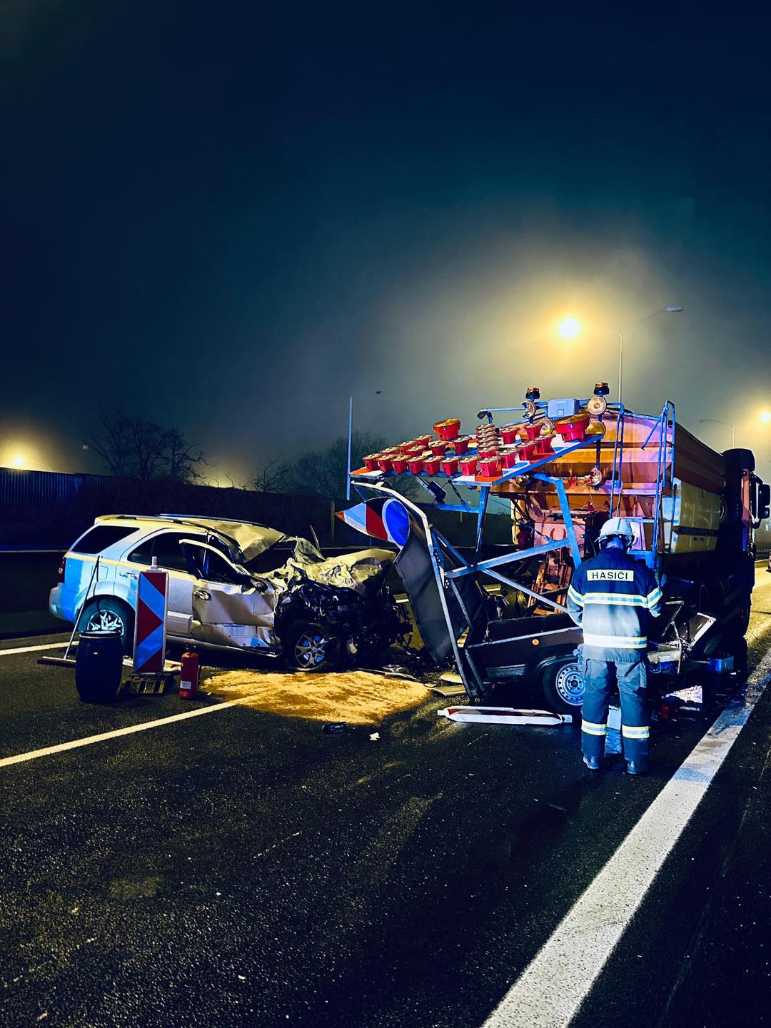 Krátce před půl pátou ráno došlo na dálnici D2 na 57,5. kilometru ve směru do České republiky k vážné dopravní nehodě. Osobní automobil narazil do odstaveného nákladního vozidla a síla nárazu zůstala uvězněna uvnitř vozu zraněná osoba. Situace byla vážná a vyžadovala rychlý a přesný zásah všech složek integrovaného záchranného systému.