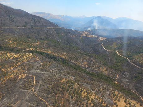 Posádka vrtulníku dosáhla hranice fyzických i technických možností při zásahu v těžce zasažené oblasti Gramsh. Situace je kritická, požáry se šíří rychlostí větru a teplotami kolem 40 °C.