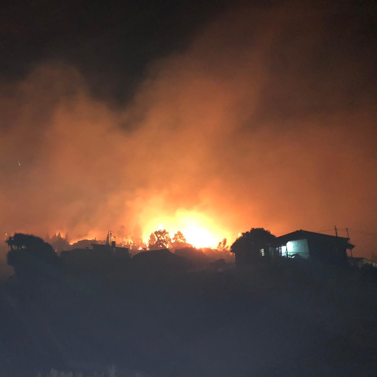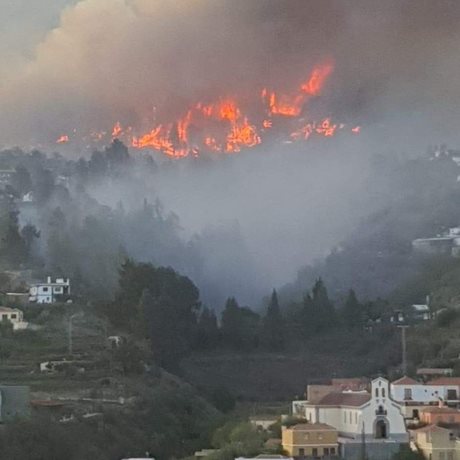 Vláda oznámila, že požár postihuje obec Puntagorda, která zahrnuje plodiny, křoviny a borovice, a šíří se na obytné domy a vozidla, a proto byla evakuována.