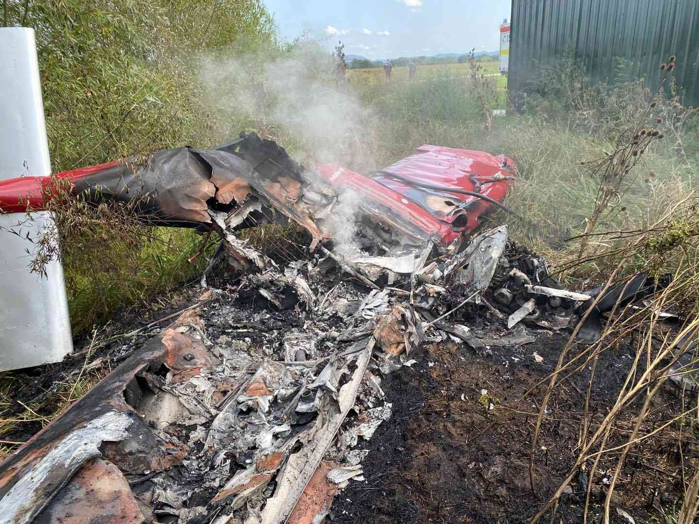 Pád ultralehkého letadla si vyžádal dva životy, hasiči zvládli požár na místě
