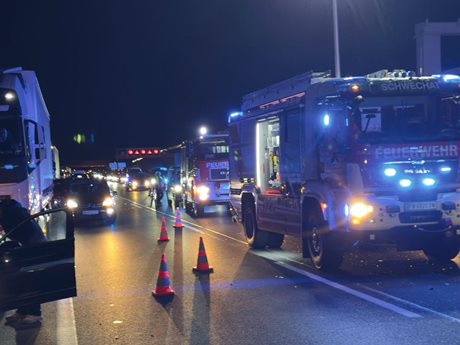 Hasiči ze Schwechatu  (okres Bruck an der Leitha) mají za sebou opravdový maraton operací. Byli v akci asi pět hodin se sedmi vozidly. Po dvou nehodách na dálnici A4 museli spěchat k požáru.