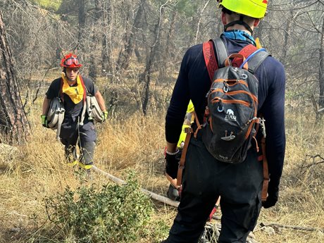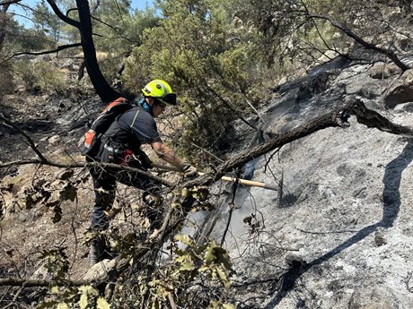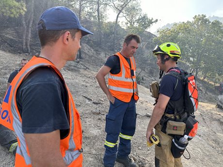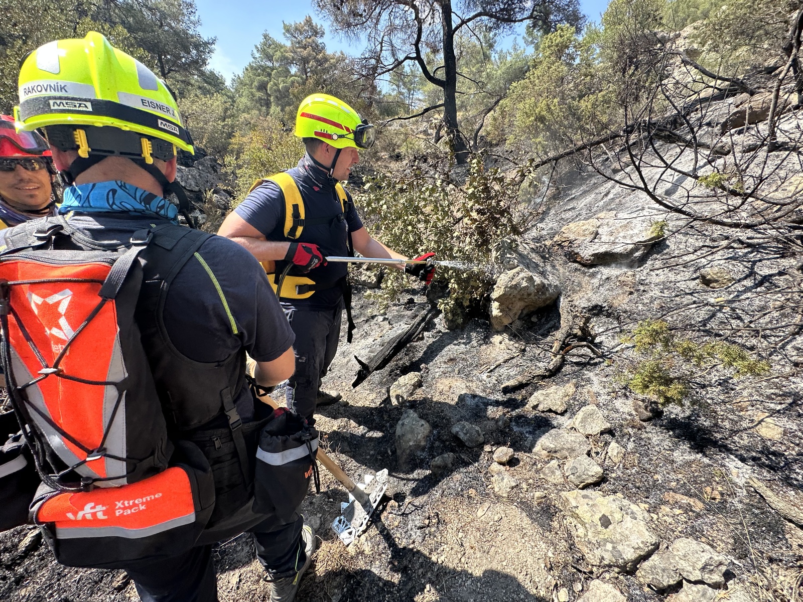 Vyhledávali a likvidovali už jednotlivá skrytá ohniska, které může rozfoukat velmi silný vítr, který od včerejška v Řecku přetrvává. Pohyb po oblasti spočívá hlavně v pěším průzkumu a transportu materiálu v hornatém terénu bez možnosti dostat se na místo mobilní požární technikou.