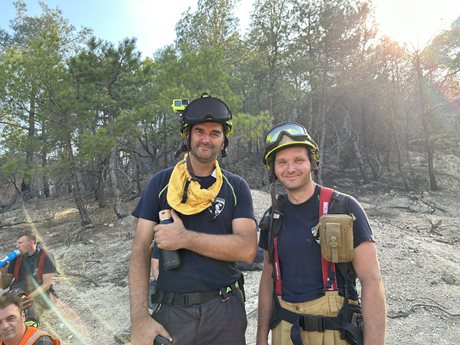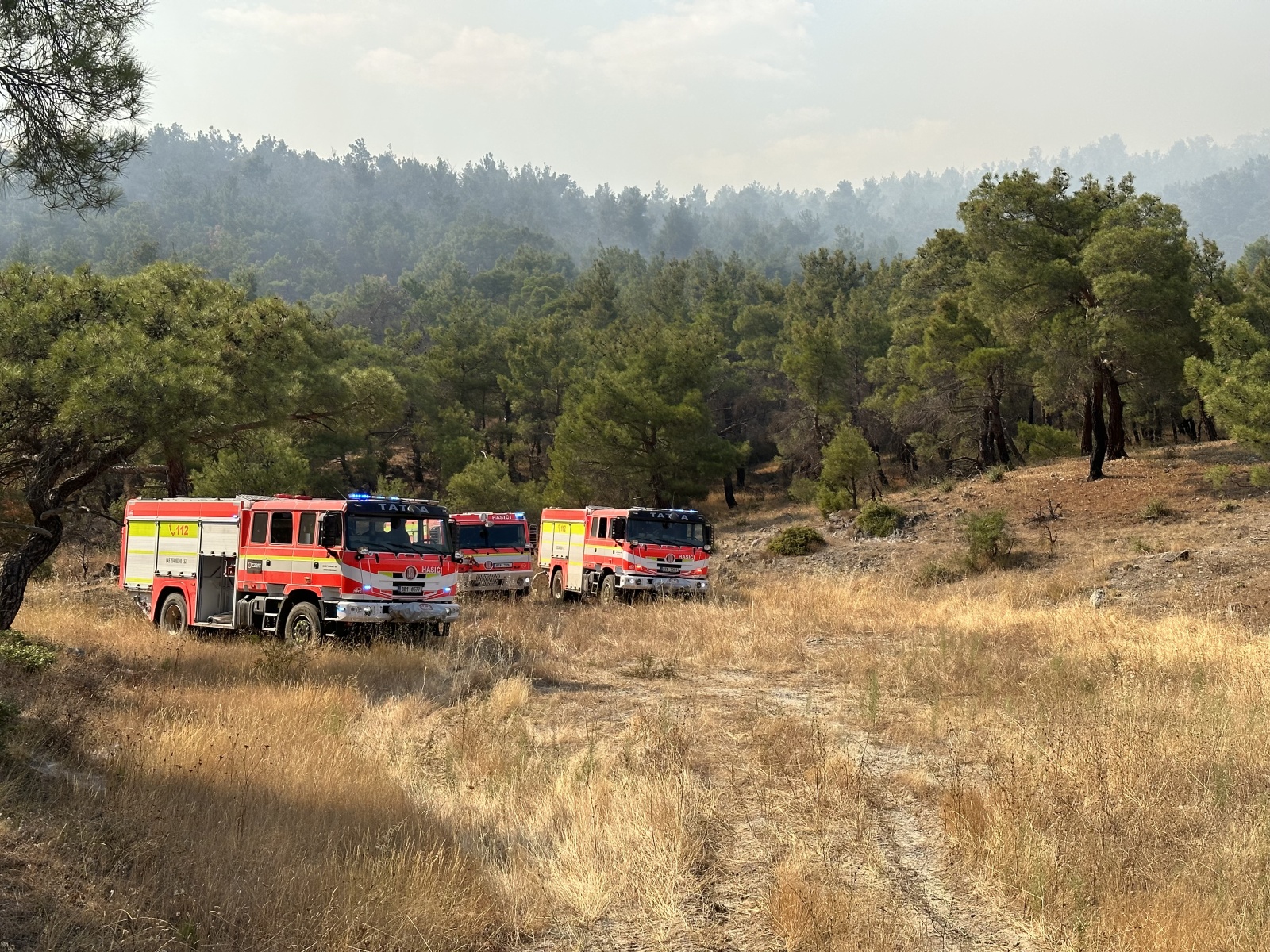 Pomoc českých hasičů při rozsáhlých požárech na východě pevninské části Řecka poblíž hranice s Tureckem zachytili ppor. BcA. Matěj Mlčoch (hasičská stanice Říčany) a nstržm. Jiří Eisner (hasičská stanice Rakovník.