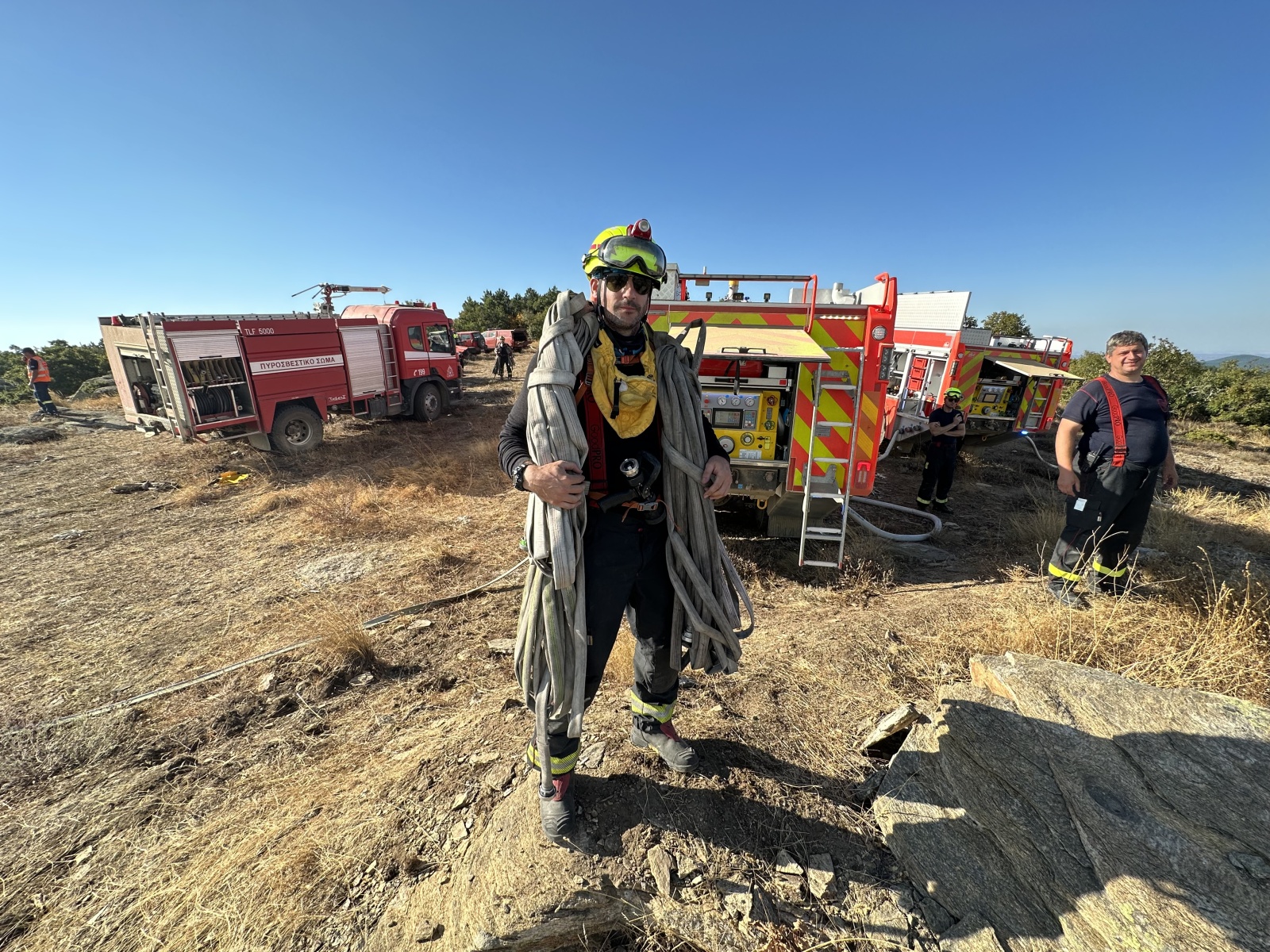 Vyrazili jsme s řeckými styčnými důstojníky do terénu v blízkosti řecko-turecké hranice. Při průzkumu nám bylo určeno místo, kde budeme zasahovat. Vyjíždíme střídat rumunské hasiče a budeme připravovat obranu jedné z vesnic, ke které se blíží požár.
