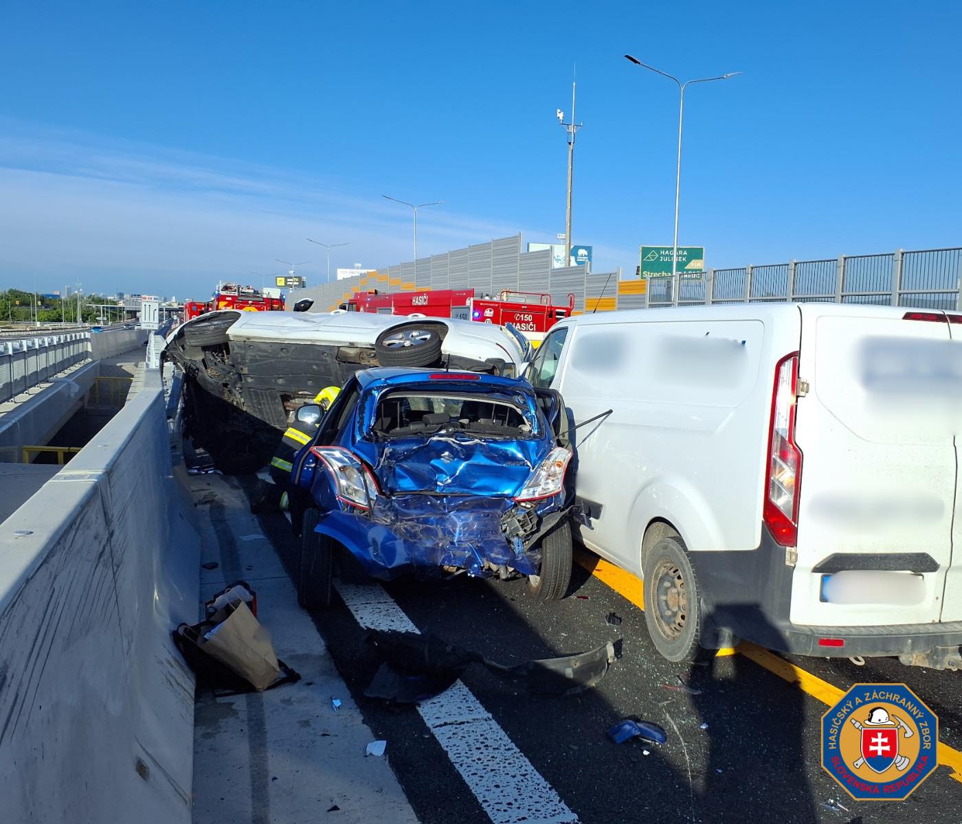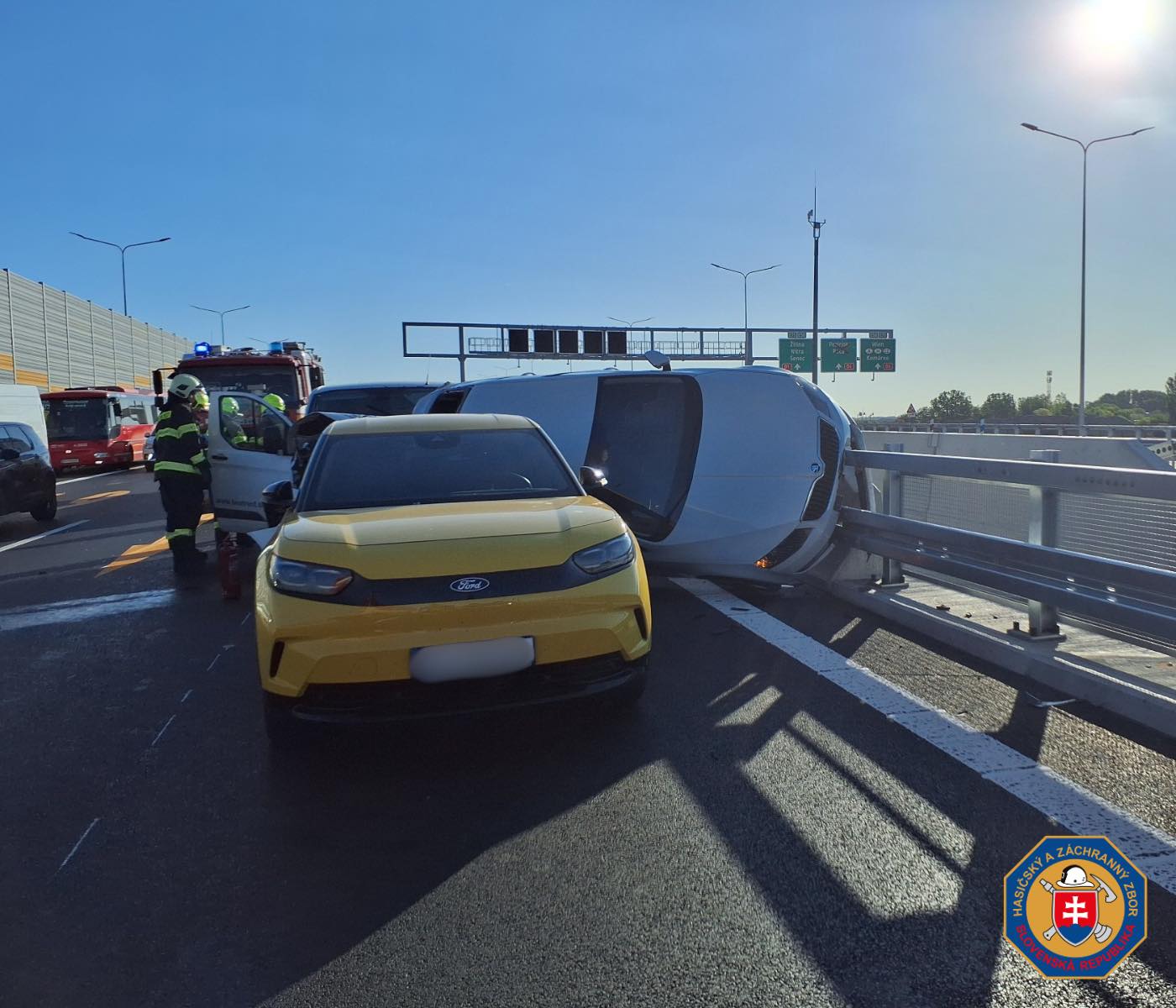 Na místě události na dálnici D1 v úseku přibližně na čtrnáctém kilometru ve směru od Sence do Bratislavy zasahovali příslušníci hasičského a záchranného sboru z okresního ředitelství v Senci společně s jednotkou z Bratislavy. Zásah probíhal za plného ranního provozu, který musel být částečně omezen a řízen tak, aby byla zajištěna bezpečnost zasahujících i projíždějících vozidel.