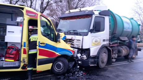 Nehoda se stala v úterý po šesté hodině ranní v Rykách na Lubelské ulici v prostoru viaduktu. Sanitka se tam srazila s nákladním autem. Jela na semaforu, aby zvládla dopravní nehodu na rychlostní silnici.