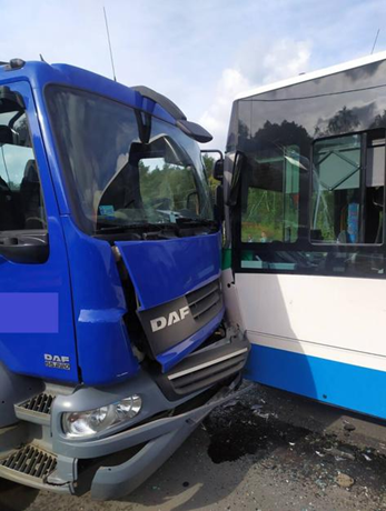 Srážka autobusu s nákladním automobilem v RybnikuKM PSP v Rybniku