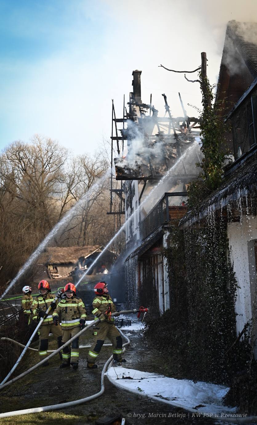Hasiči přijeli na místo včas, ale rozměry požáru byly devastující. Požár se rychle šířil na dřevěnou střechu, pokrytou dřevěnými šindeli, a během několika minut zachvátil celé podkroví. Z budovy se stal neovladatelný oheň, jenž ohrožoval nejen samotný hostinec, ale i okolní domy a lesní porosty. Po několika hodinách intenzivního boje s plameny se však podařilo hasičům požár lokalizovat a postupně ho dostat pod kontrolu. Podle vyjádření brigádního generála Marcina Betleji, mluvčího hasičského sboru v Podkarpatském vojvodství, bylo zásahové úsilí neuvěřitelně náročné. „Oheň zachvátil střešní konstrukci o rozměrech přibližně 40 x 20 metrů. Mimo to jsme museli provést náročné demoliční práce a chladit žhavé uhlíky, které stále představovaly nebezpečí,“ uvedl Betleja.