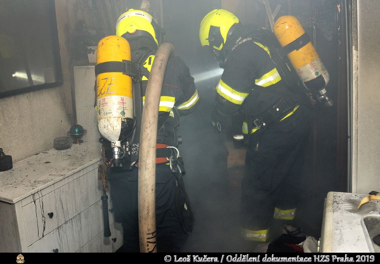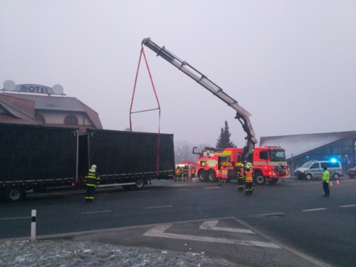 V pondělí 21. ledna 2019, krátce před desátou hodinou, byl na operační a informační středisko středočeských hasičů nahlášen požár kamionu na brněnské dálnici D1 před 7. kilometrem ve směru do Prahy u obce Čestlice. Na místo byla vyslána profesionální jednotka ze stanice Říčany a v rámci mezikrajské spolupráce vyjely také jednotky HZS hlavního města Prahy ze stanic Chodov a Modřany. Současně byla k události povolána jednotka sboru dobrovolných hasičů obce Říčany. Protože zprvu nebylo jasné, zda není na místě někdo zraněný, byla přivolána i zdravotnická záchranná služba. Cestou k zásahu hlásil velitel čety, že už z dálky vidí hustý černý kouř, což vzápětí potvrdil i pracovník Střediska správy a údržby dálnic, který zpozoroval stoupající dým prostřednictvím dálničních kamer. Po příjezdu na místo se potvrdilo, že jde o nehodu dvou kamionů, které jely za sebou, s následným požárem. Navíc byl na vozovce vysypaný náklad z návěsu zadního vozidla. Dálnice D1 byla ve směru do Prahy pro veškerou dopravu zcela uzavřena. Před příjezdem jednotek byl řidič kamionu z vozidla vytažen a předán do péče zdravotnické záchranné službě, která muže ošetřila a ponechala na místě, také druhý řidič byl ošetřen bez nutnosti převozu do zdravotnického zařízení. Zásah probíhal vysokotlakým vodním proudem a pěnidlem. Poté byly nasazeny další dva vodní proudy. Požár hasiči lokalizovali za necelou čtvrthodinu od zahájení zásahu. Poté bylo nutné veškerý náklad z vozidla vyložit, aby byla dohašena i skrytá ohniska. Hasiči použili termokameru, aby se ujistili, že jsou všechny části vozidla a nákladu ochlazené a nehrozí jejich vznícení. Při nehodě došlo k protržení nádrže u jednoho z nákladních automobilů a k úniku asi 170 litrů nafty do půdy. Proto byl přivolán i zástupce životního prostředí příslušné obce a událost mu byla předána k likvidaci. Zdroj. por. Bc. Tereza Fliegerová - tisková mluvčí HZS Středočeského kraj Foto:HZS Středočeského kraje FOTOGALERIE