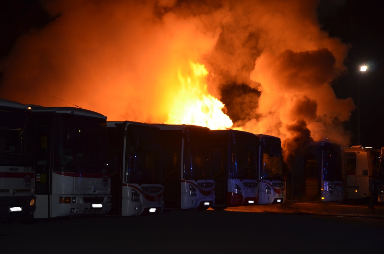 V noci na pondělí 21. ledna 2019, krátce před třetí hodinou, vyjížděli kladenští hasiči k nahlášenému požáru autobusu v areálu ČSAD Kladno. Na místo vyjela profesionální jednotka ze stanice Kladno s dvěma cisternami a kontejnerem kombinovaného hašení, který mimo jiné obsahuje větší množství pěnidla pro zvýšení účinku hašení. Operační středisko k události vyslalo také dobrovolné jednotky obcí Hřebeč a Braškov. Po příjezdu na místo bylo zjištěno, že požárem je zasažena celá motorová část autobusu, který stojí v řadě s dalšími. Hasiči zasahovali v dýchací technice vysokotlakým proudem. Postupně byly okolní autobusy odstaveny od hořícího, aby nedošlo k jejich poškození. Poté byly nasazeny další dva vodní proudy s pěnou. Požár se podařilo lokalizovat na necelou čtvrthodinu. Následně bylo nutné rozebrat část laminátové střechy, aby byla dohašena všechna skrytá ohniska. Po čtvrté hodině byl zásah ukončen a všechny jednotky se vrátily na své základny. Velitel zásahu předal místo požáru dispečerovi s tím, že firma sama zajistí dohlídku do rána do sedmi hodin. Škoda byla stanovena na 2,5 milionu korun, příčinou vzniku požáru byla podle vyšetřovatele technická závada v motorovém prostoru autobusu. por. Bc. Tereza Fliegerov Zdroj. por. Bc. Tereza Fliegerová - tisková mluvčí HZS Středočeského kraj Foto:HZS Středočeského kraje FOTOGALERIE