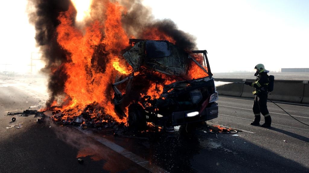 Nehoda kamionů s následným požárem zablokovala brněnskou dálnici před Prahou